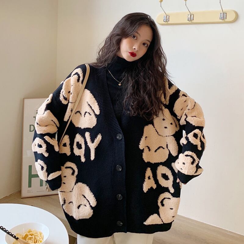 セーター コート スプリングオータムウィンタースタンダードルーズニットカーディガン レトロ 春物 秋物 冬物 試着室2448915750