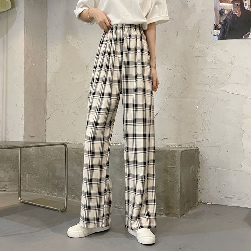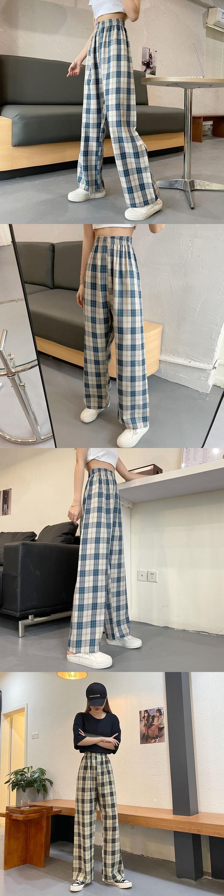 格子柄パンツ サマー薄手ウェストルーズワイドレッグカジュアル 夏物 ワイドパンツ 試着室37028286090