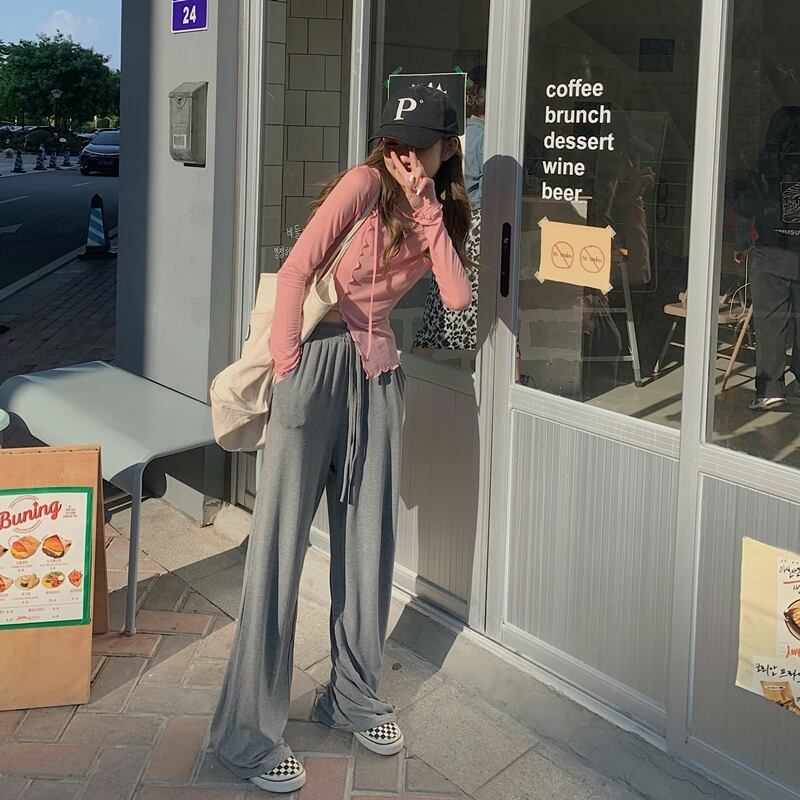 グレーパンツ スプリングオータムハイウェストウェストルーズカジュアル 春物 秋物 試着室77754148612