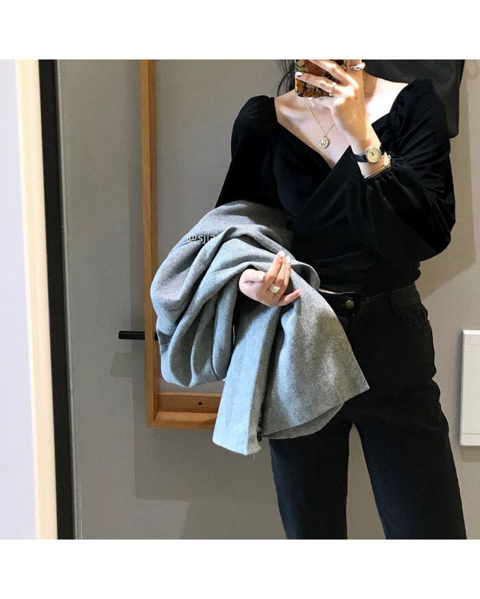 ウェストショートブラウス スプリングオータムスタイルシャツ ロング 春物 秋物 試着室95422739037
