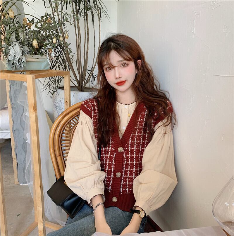 色:ワンピースアプリコットシャツ,白いシャツのワンピース,赤いベストシングル,ブラックベストワンピース