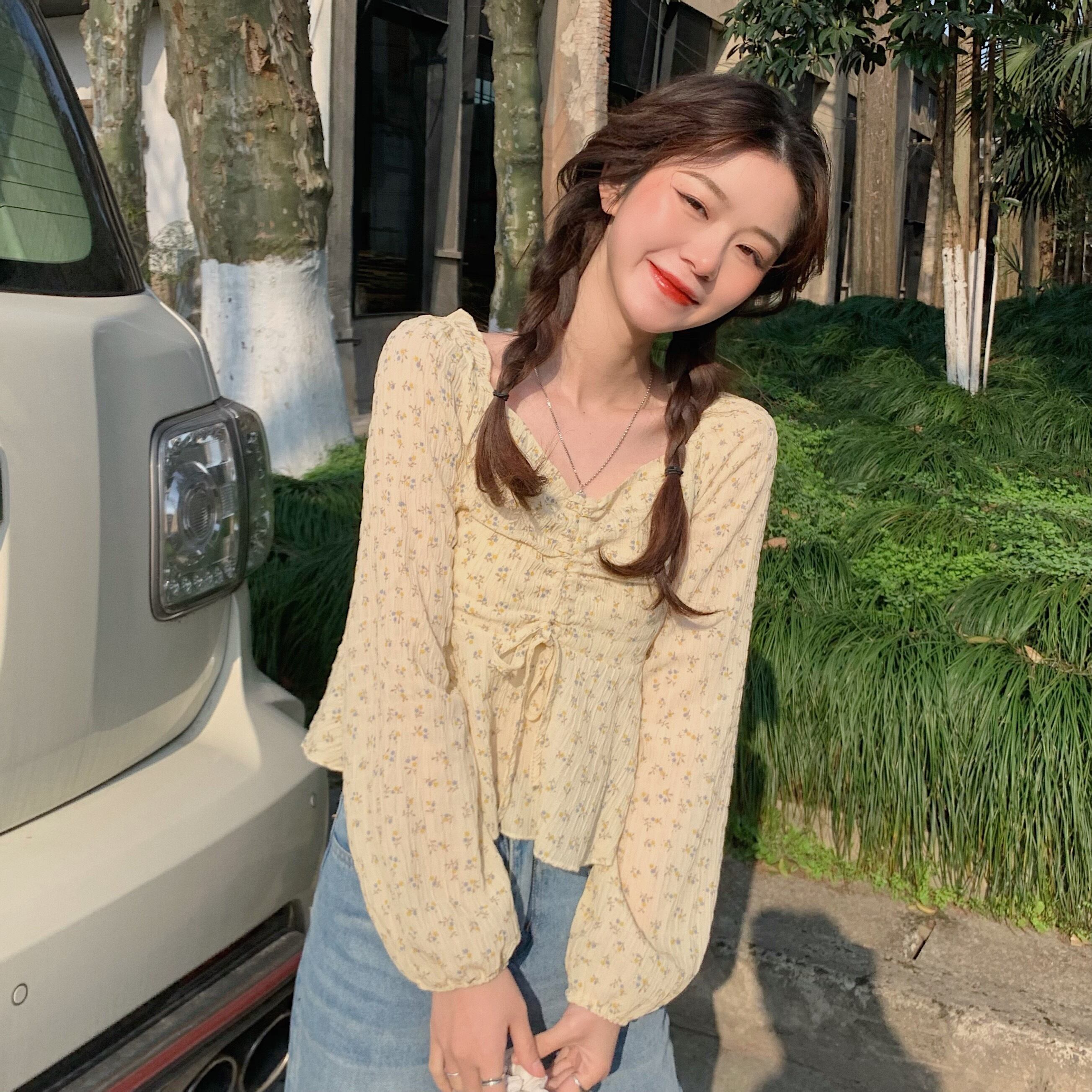 スプリングオータムショートブラウス フローラルシフォンシャツ ロング 春物 秋物 花柄 試着室45867943737