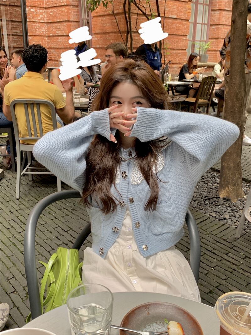 ブルーセーター ジャケット スプリングオータムカーディガンニットトップス 大人ガーリー スウィート キュート カジュアル 春物 秋物 試着室59026470480