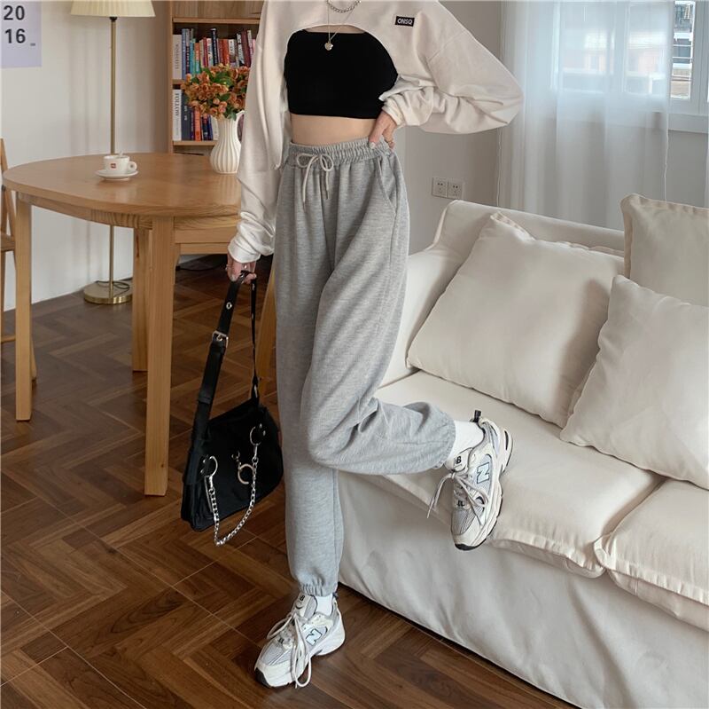 グレーパンツ カジュアルスプリングオータムハイウェストウェスト薄手クロップド 春物 秋物 試着室39717832954