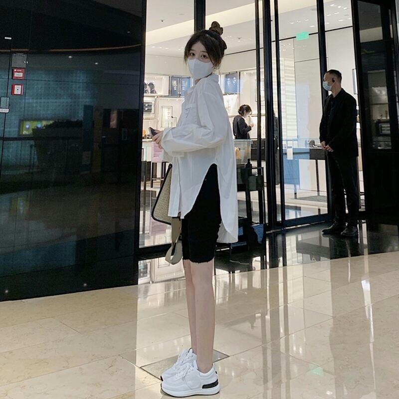 スタンダードホワイトシャツ スプリングオータム ロング レトロ 春物 秋物 試着室5336225568