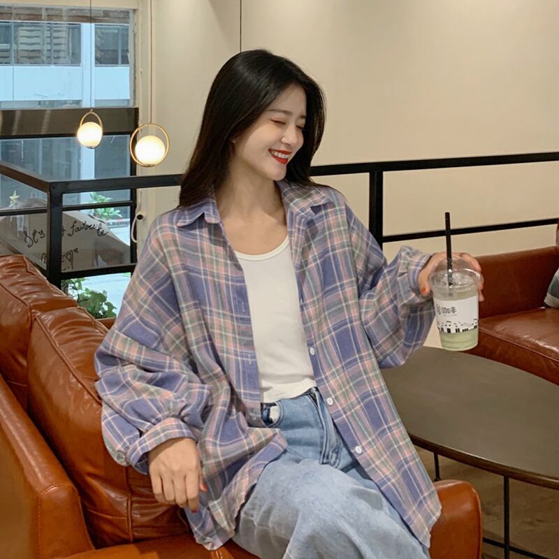 格子柄シャツ ジャケット スプリングオータムスタンダードトップス ロング レトロ 春物 秋物 試着室69170288333
