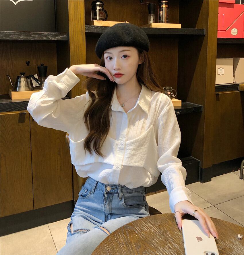 ホワイトシャツ スプリングオータムスタイルトップス ロング 春物 秋物 試着室69318957634