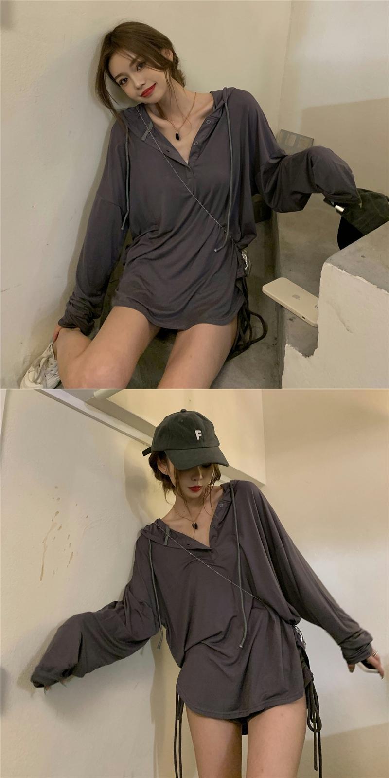 Tシャツ スプリングオータムルーズ ロング レッド 春物 秋物 試着室87089808040