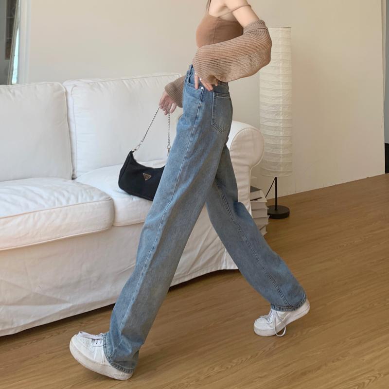 スプリングオータムハイウェストウェストジーンズ ルーズパンツ ストリート 春物 秋物 試着室85186603483