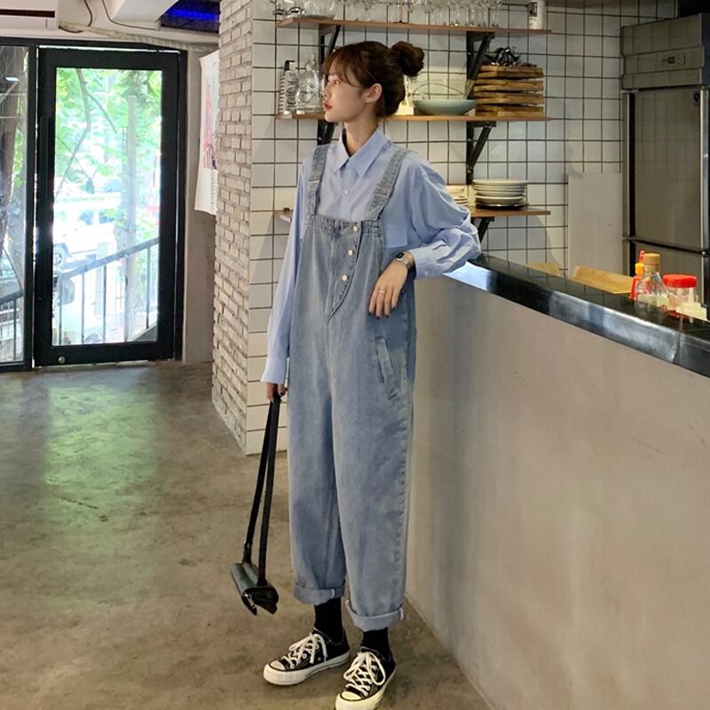 レッドオーバーオール ルーズスプリングオータム薄手ジャンプスーツ オールインワン パンツ 春物 秋物 試着室97984210185