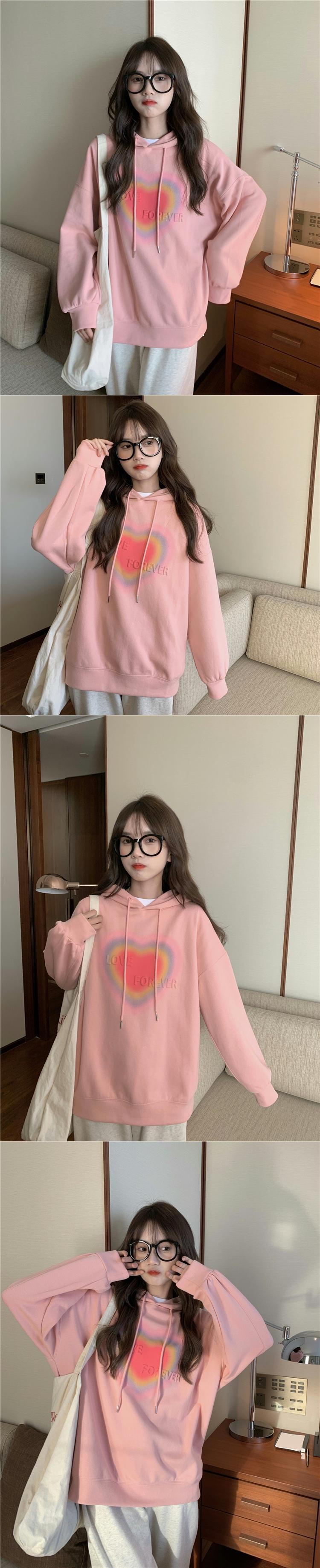 フードセーター スプリングオータム薄手ルーズスタイル ピンク 春物 秋物 試着室21410821770