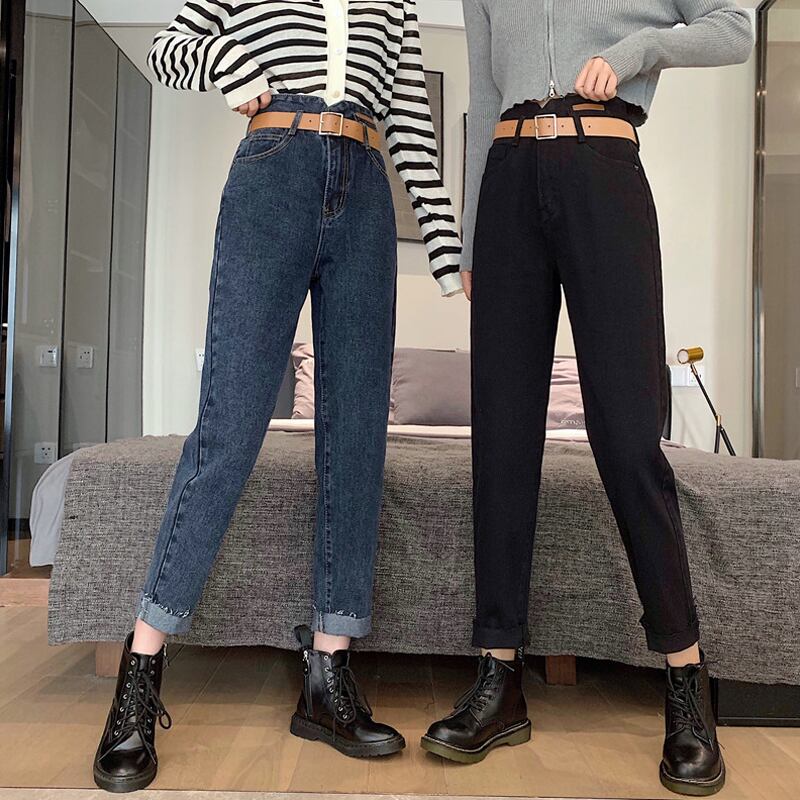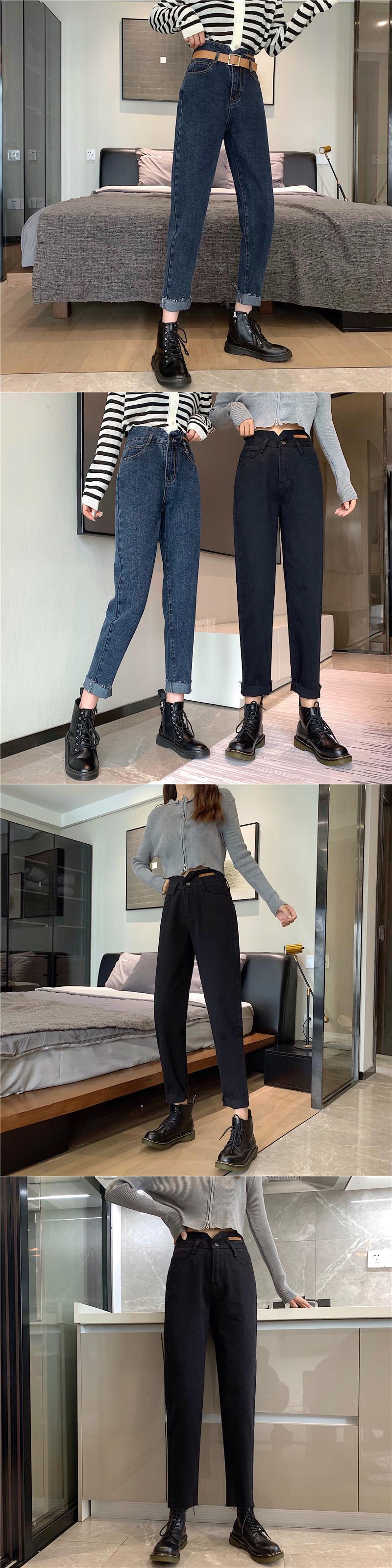 スプリングオータムハイウェストウェストジーンズ ルーズパンツ ストリート 春物 秋物 試着室50103765050