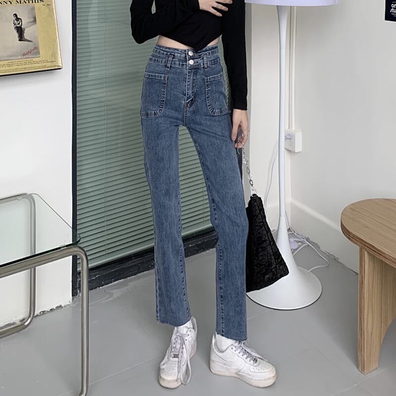 ジーンズ ルーズスプリングオータムハイウェスト薄手パンツ 春物 秋物 試着室85405505082