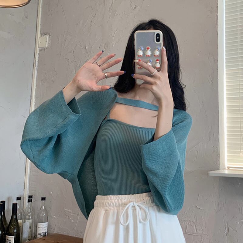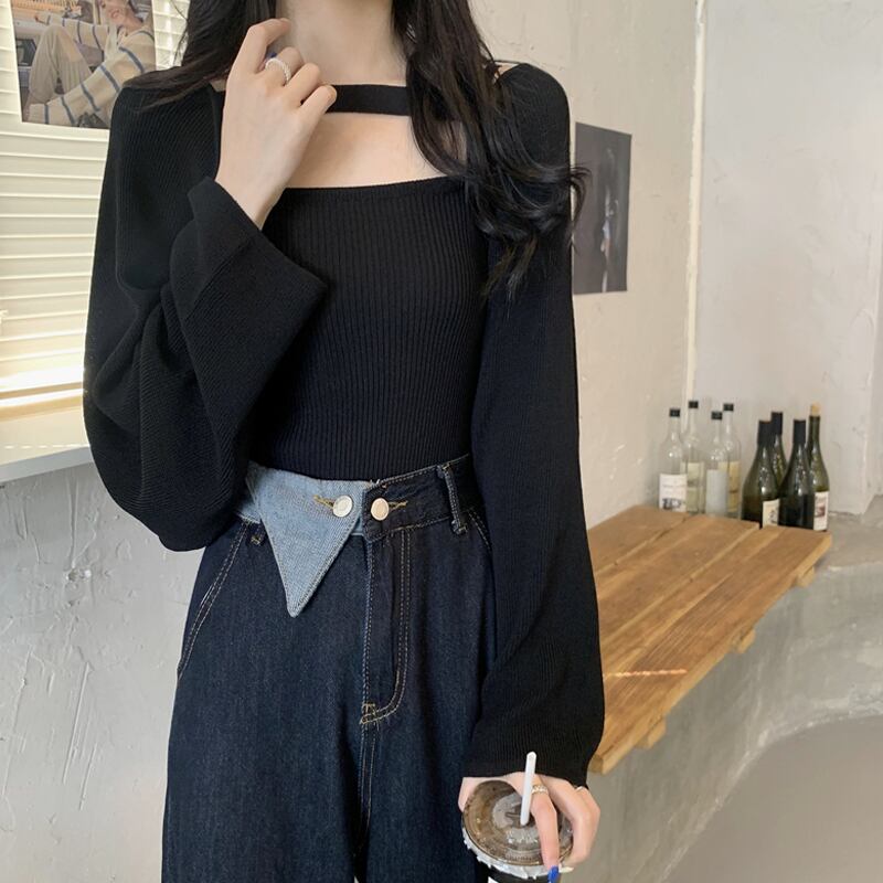 ブラックニットカーディガンスプリングオータムブラウス ショートセーター ジャケット 春物 秋物 ピュア 試着室54317466570