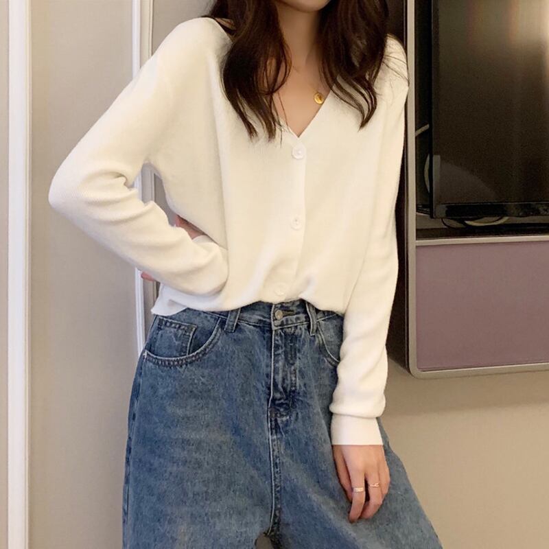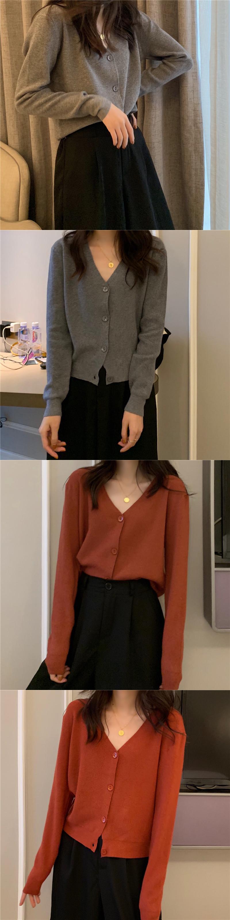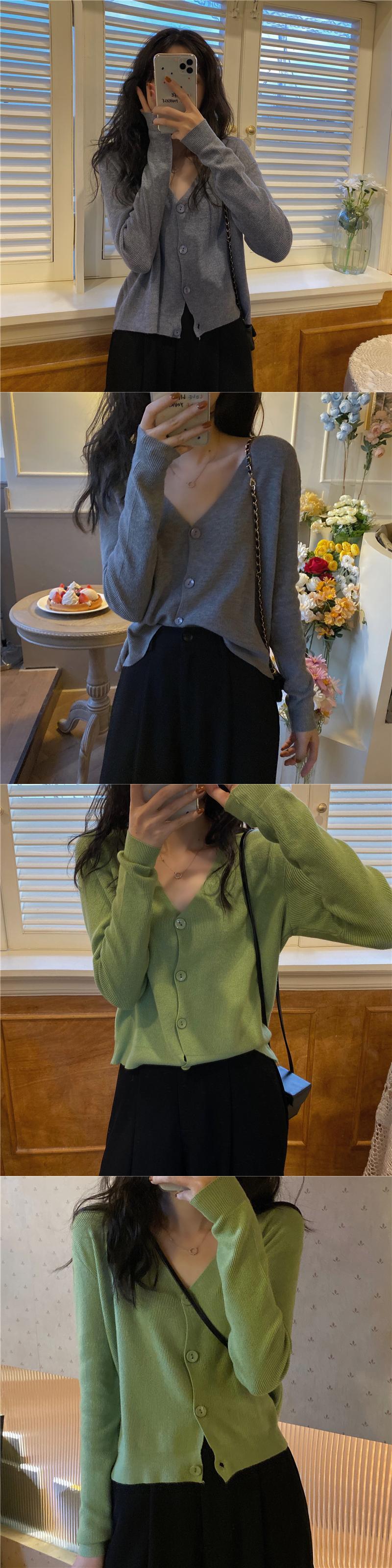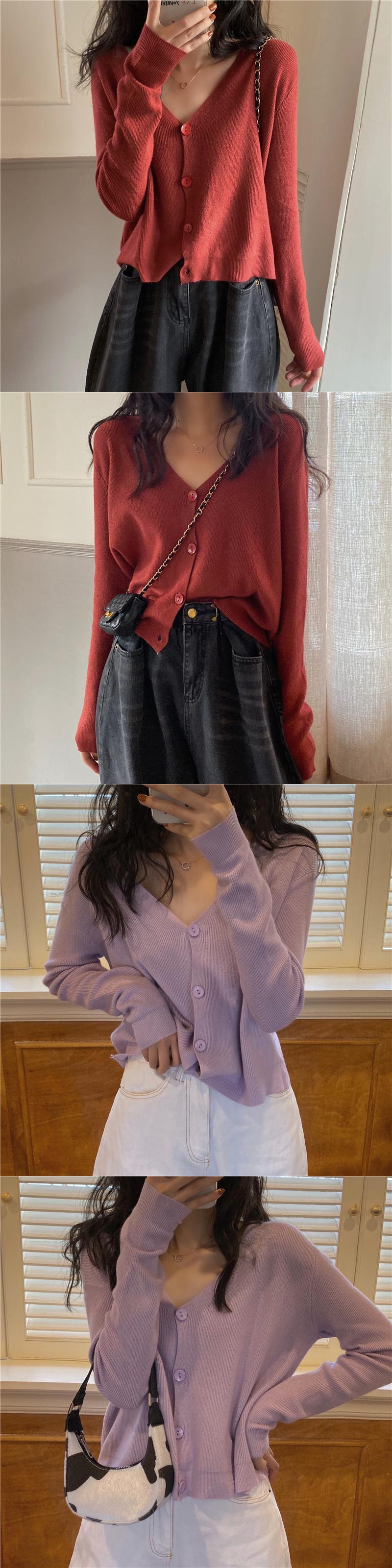 Vネックニットカーディガンスプリングオータム薄手セーター ジャケット ショートトップス ロング 春物 秋物 試着室2176217740
