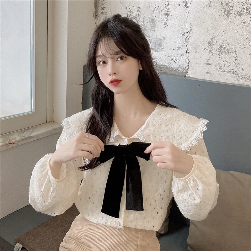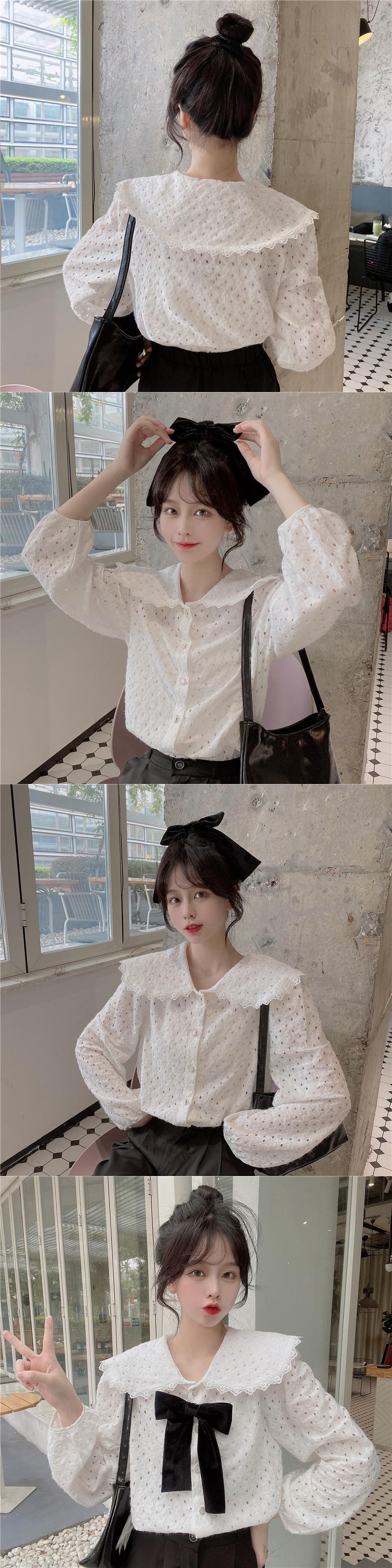 カラーシャツ スプリングオータムリボントップス ロング 大人ガーリー スウィート キュート カジュアル 春物 秋物 試着室46996701470