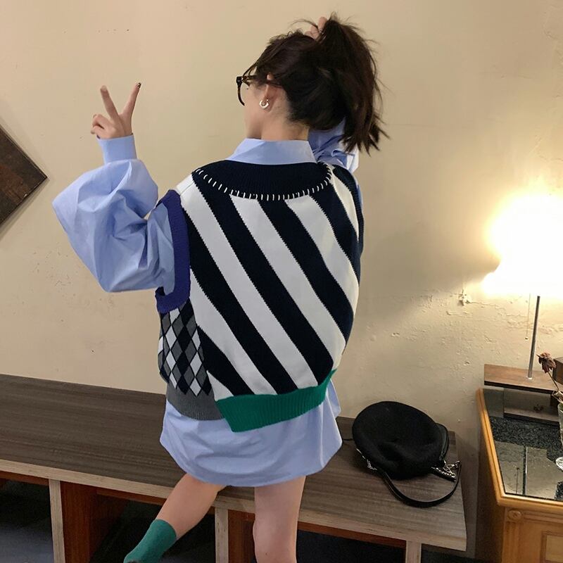 ストライプVネックニットスプリングオータム 春物 秋物 試着室20036079480