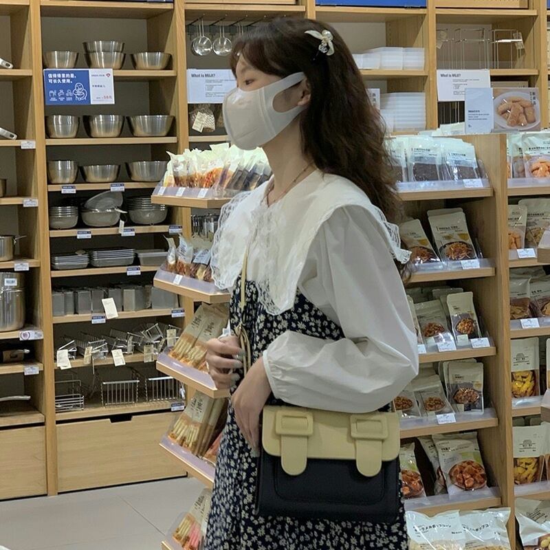 スプリングオータムホワイトカラーシャツ ショートトップス ロング 春物 秋物 試着室90845362267