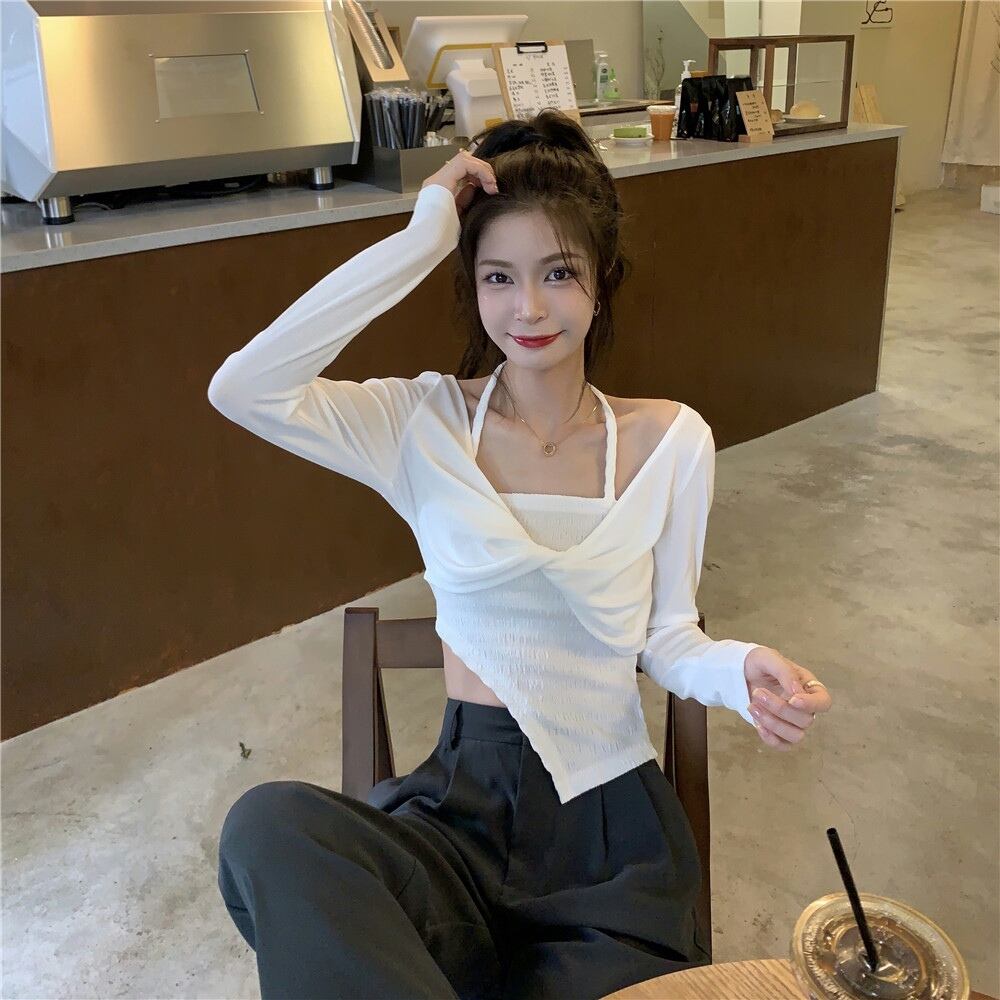 Tシャツ スプリングオータムブラウス ショートトップス ロング 春物 秋物 試着室98150094858