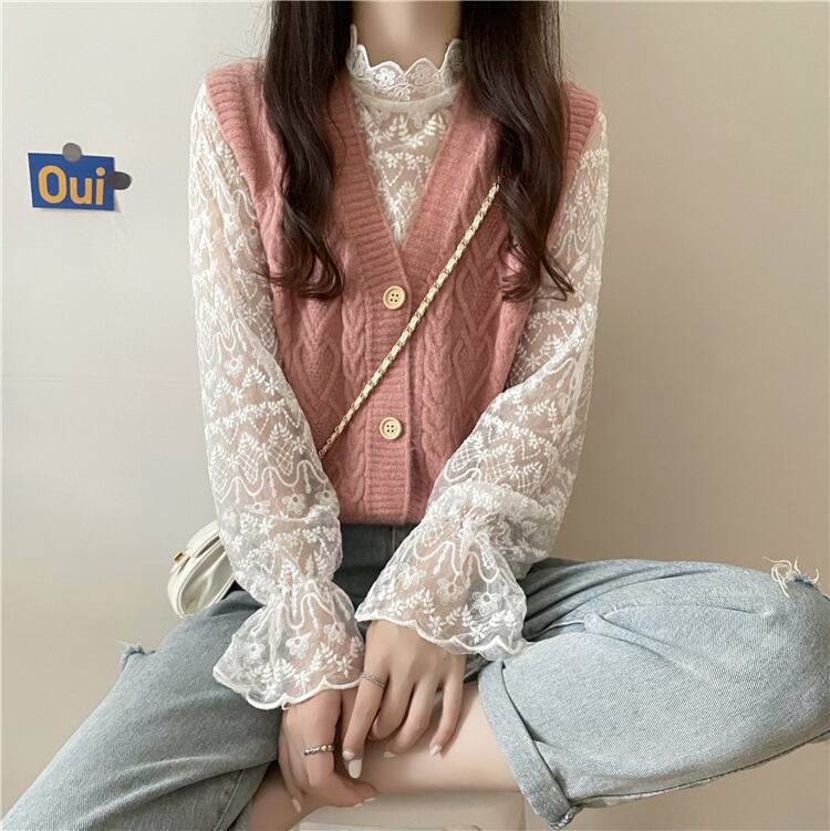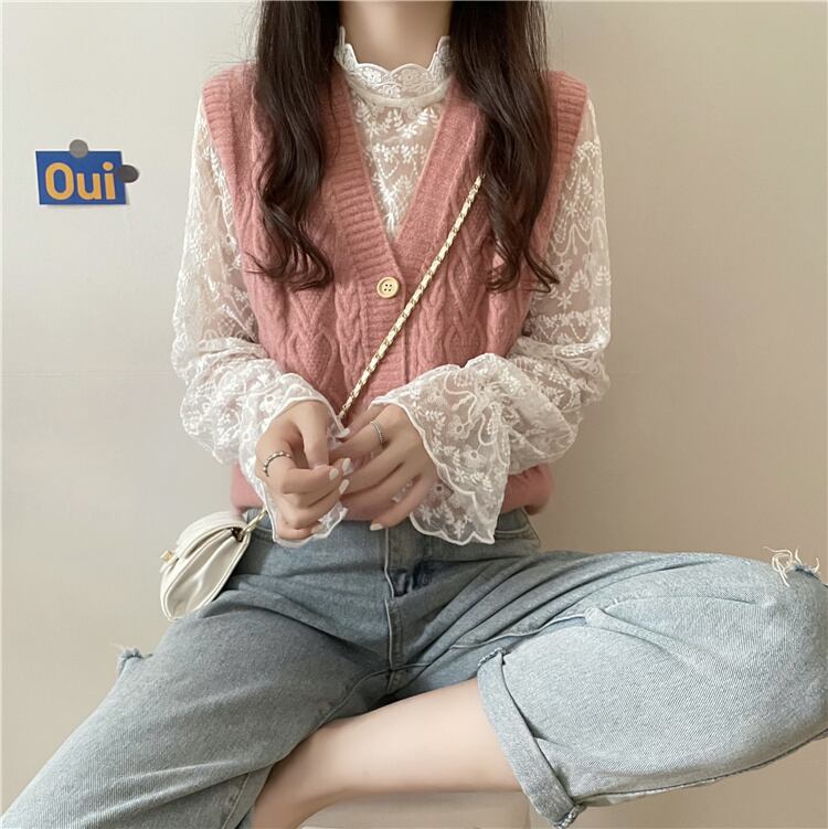 ホワイトVネックニットスプリングオータムスタイルセーター レッド 春物 秋物 試着室41961498852