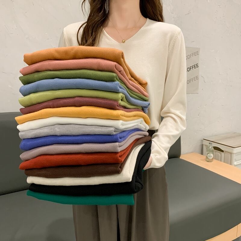 Vネックスプリングオータムセーター ロング 春物 秋物 試着室56496734156