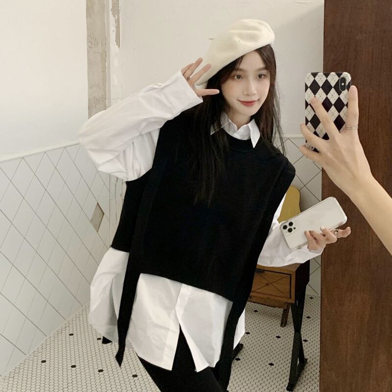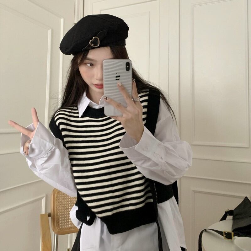 色:白いシャツワンピース,ブラックベストワンピース,ストライプベストシングル