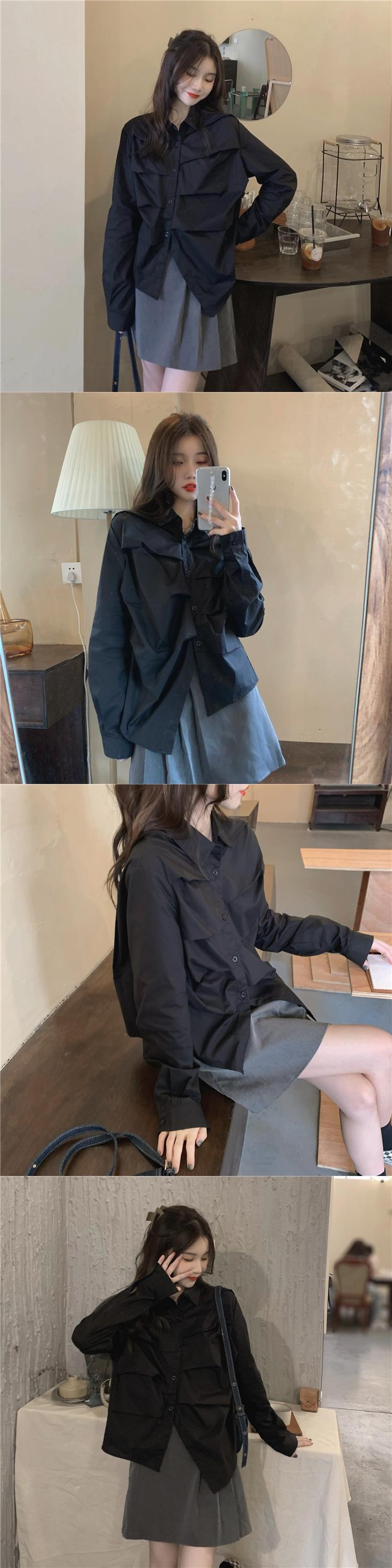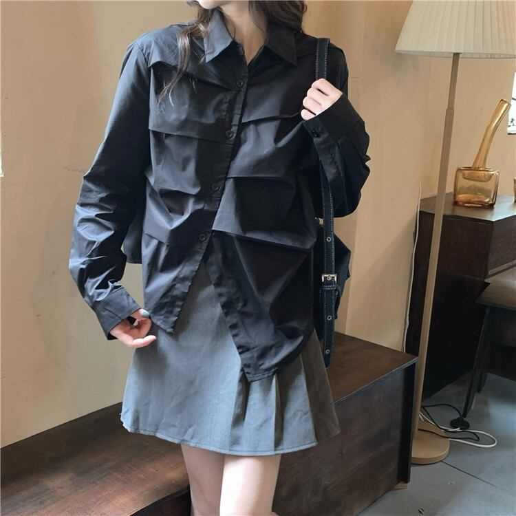 シャツ スプリングオータムトップス ロング 春物 秋物 パープル 試着室37444008172