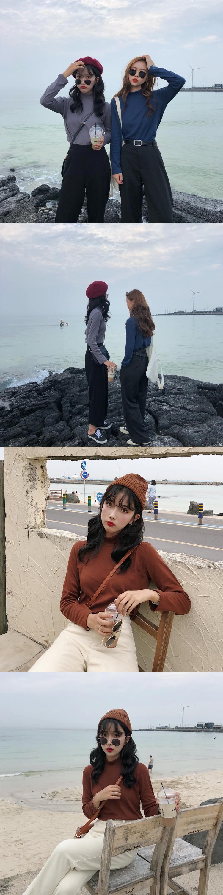 ブルーカラーTシャツ スプリングオータムトップス ロング 春物 秋物 試着室18008846011