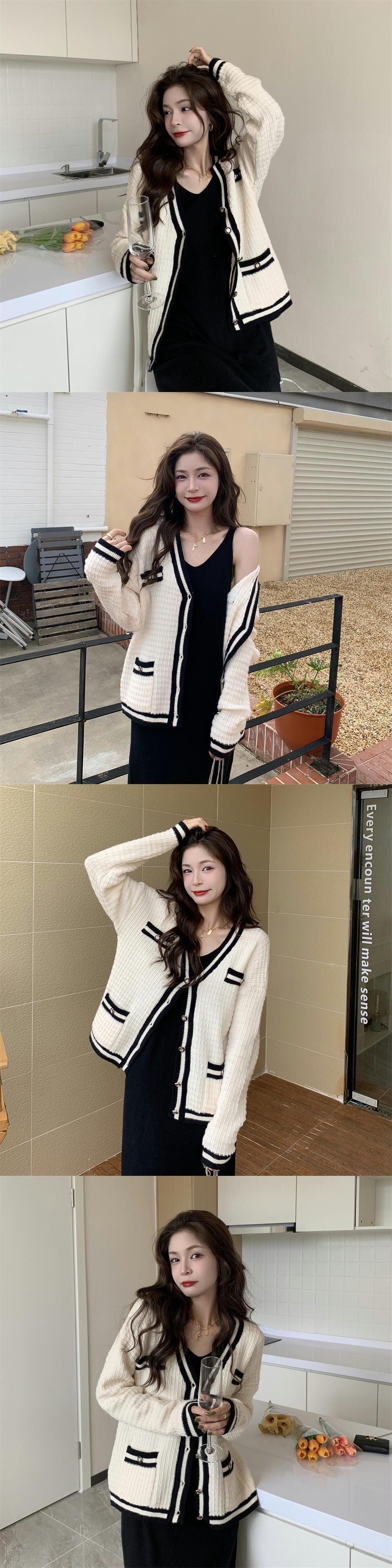 セーター コート スプリングオータムルーズVネックニットカーディガン ピンク 春物 秋物 試着室43484748807