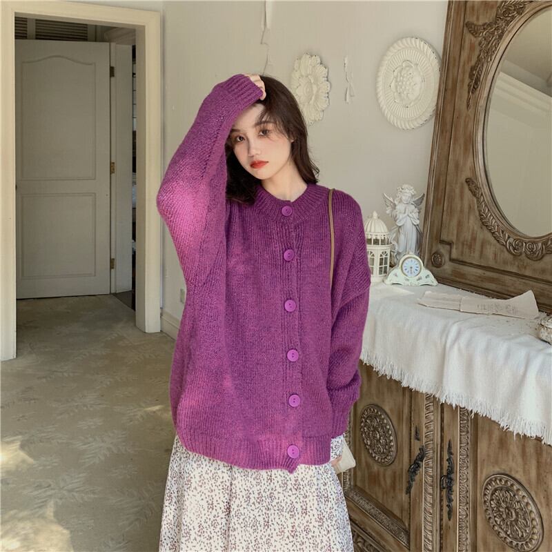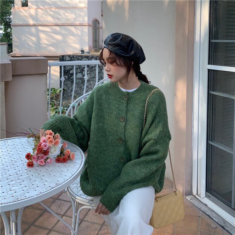 グリーンセーター ジャケット スプリングオータムスタンダードルーズスタイルニットカーディガン レトロ 春物 秋物 試着室44730243231