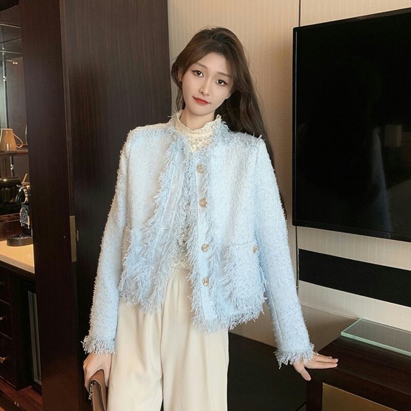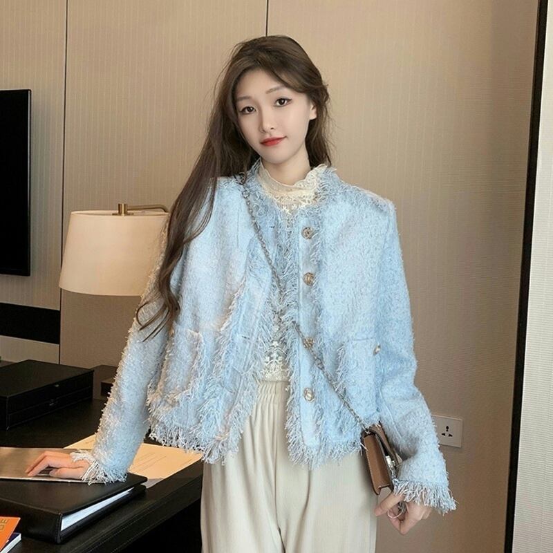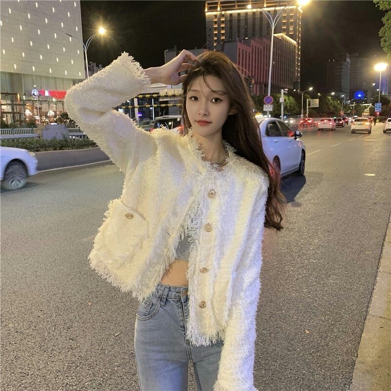 ホワイトショートジャケット スプリングオータムウィンタースタンダード レトロ 春物 秋物 冬物 試着室46023823842