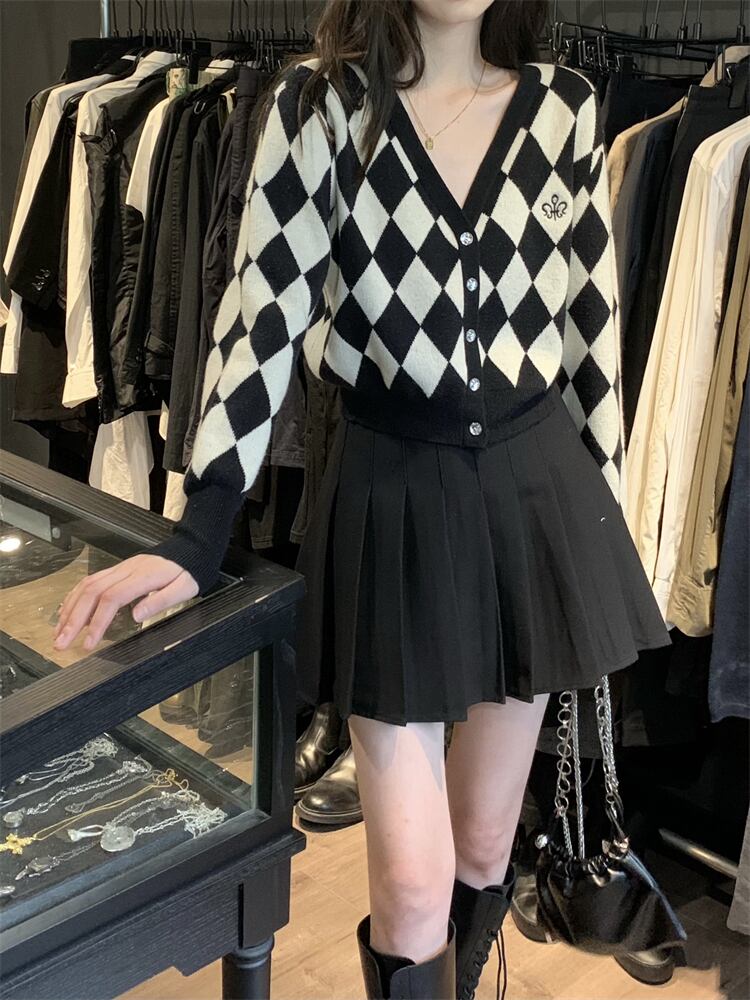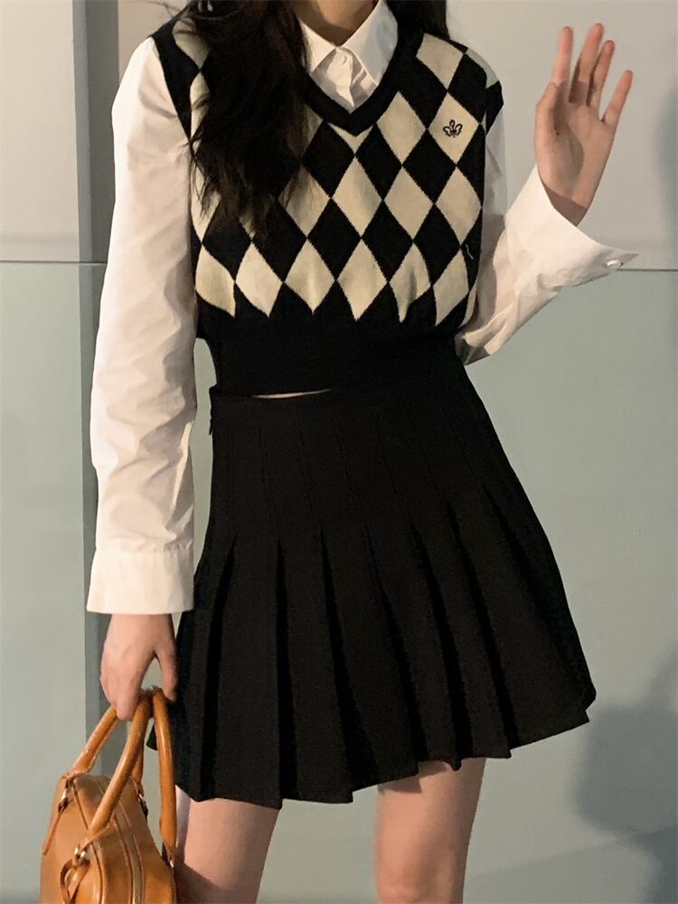色:単一のベスト,カーディガンシングル,ブラックプリーツスカートシングルピース