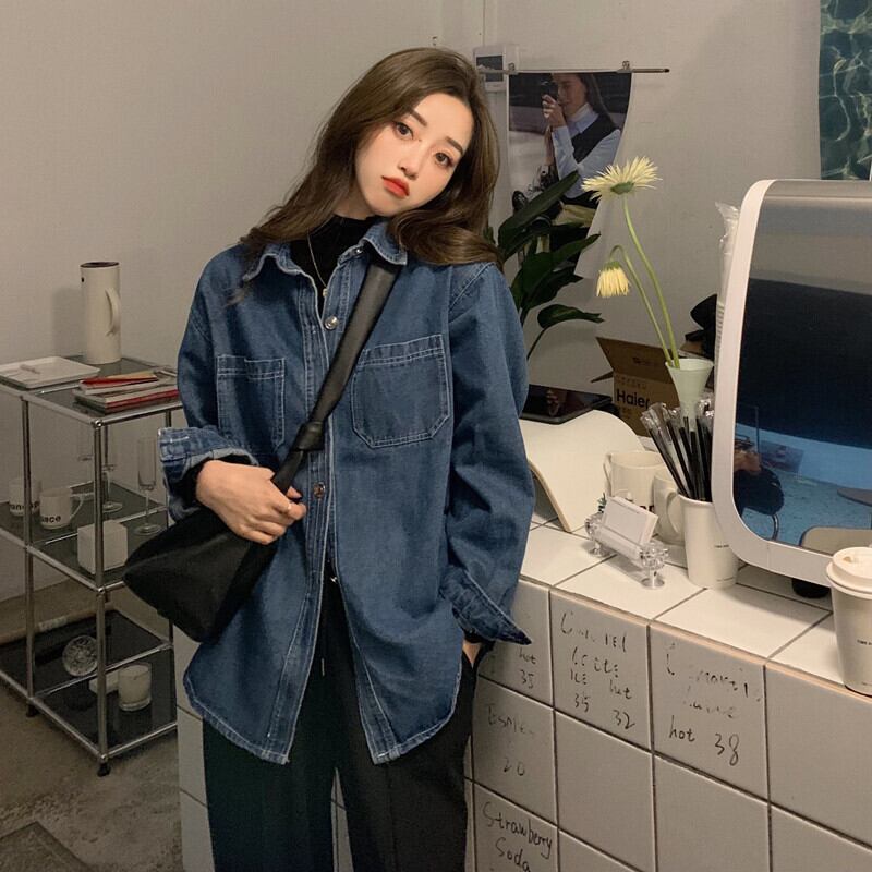 スタンダードスタイルシャツ ジャケット スプリングオータムルーズトップス ロング レトロ 春物 秋物 試着室84752563823