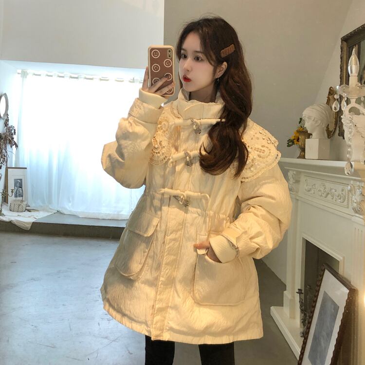 色:ベージュの綿の服一枚,オフホワイトのダウンジャケットシングル,取り外し可能なショールワンピース