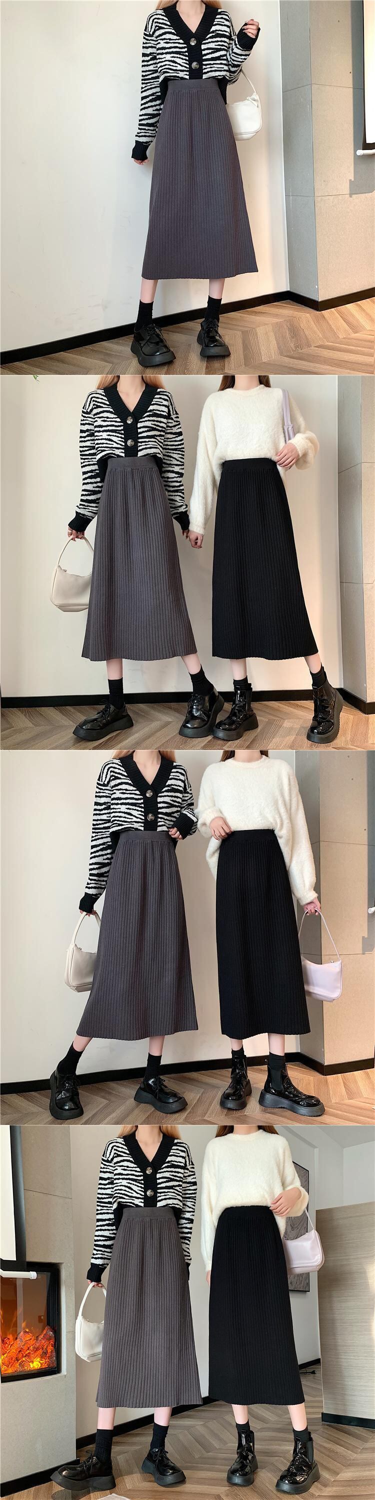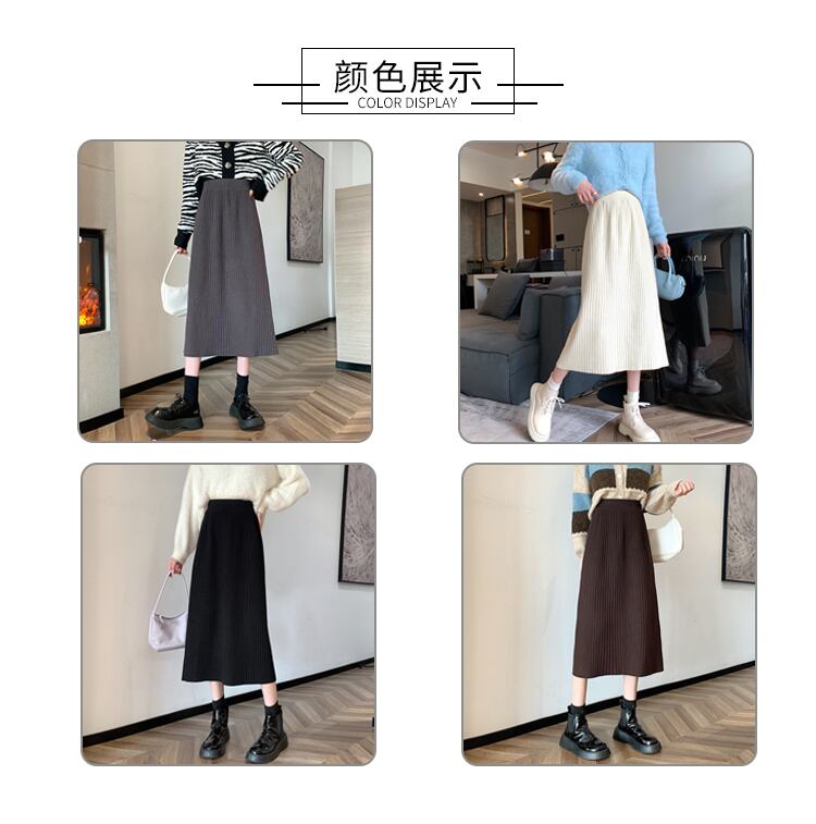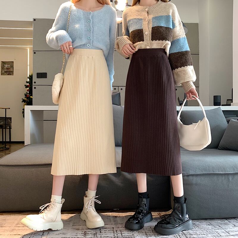 ブラックニットスカート オータムウィンターAラインスタイルセーター ロング 秋物 冬物 試着室39109786405