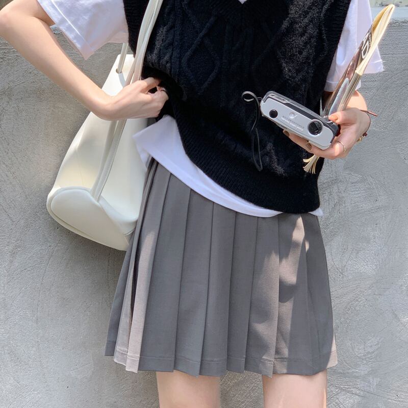 ブラックプリーツスカート スプリングオータムハイウェストAライン薄手ショート 春物 秋物 試着室84228188727