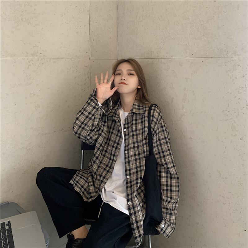 スプリングオータムスタンダード格子柄シャツ ルーズスタイル レトロ 春物 秋物 試着室98652123936
