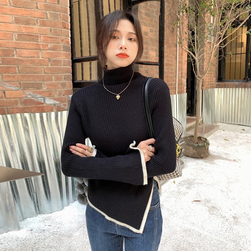 ブラックシャツ オータムウィンターニットトップス 秋物 冬物 試着室7441283443
