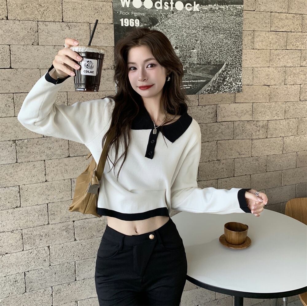 セーター スプリングオータム薄手ニットショートトップス 春物 秋物 試着室59212690555