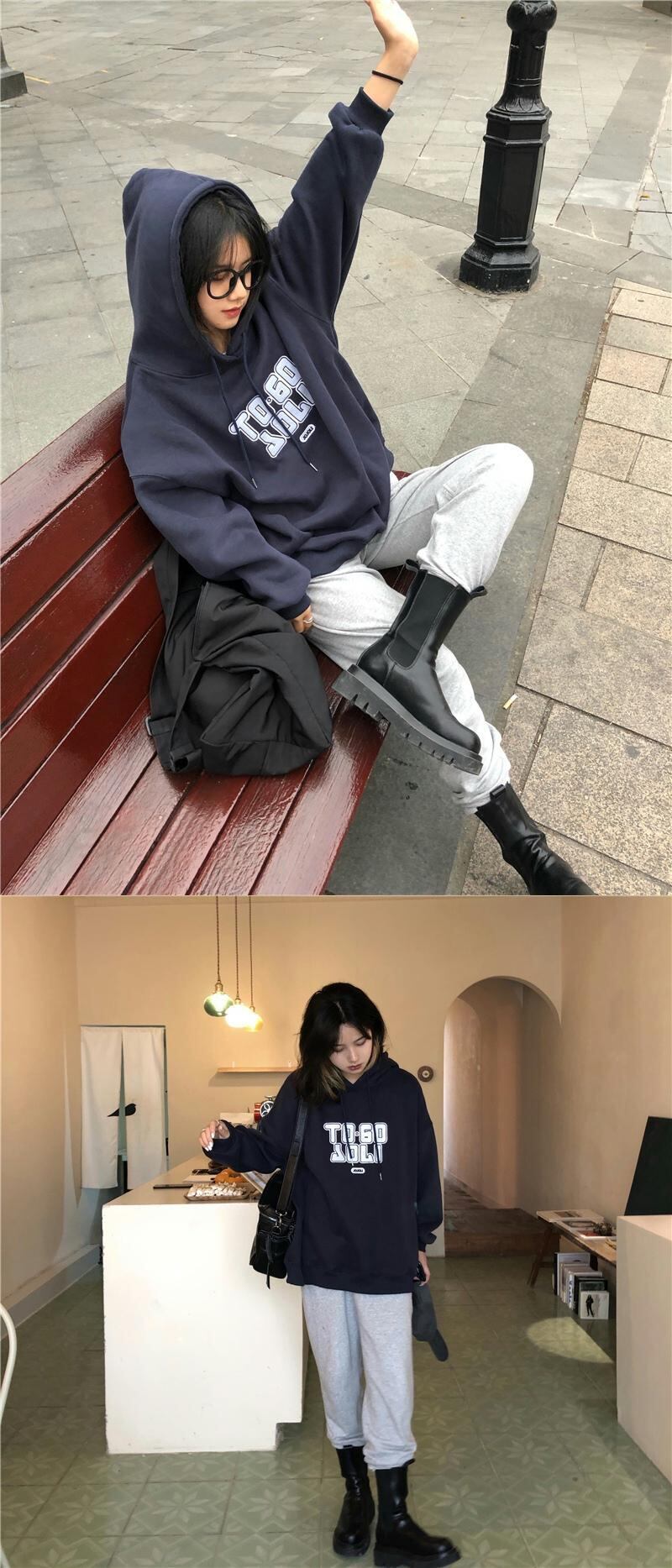 グレーフードスウェット スプリングオータムルーズスタイルトップス 春物 秋物 試着室81369056283