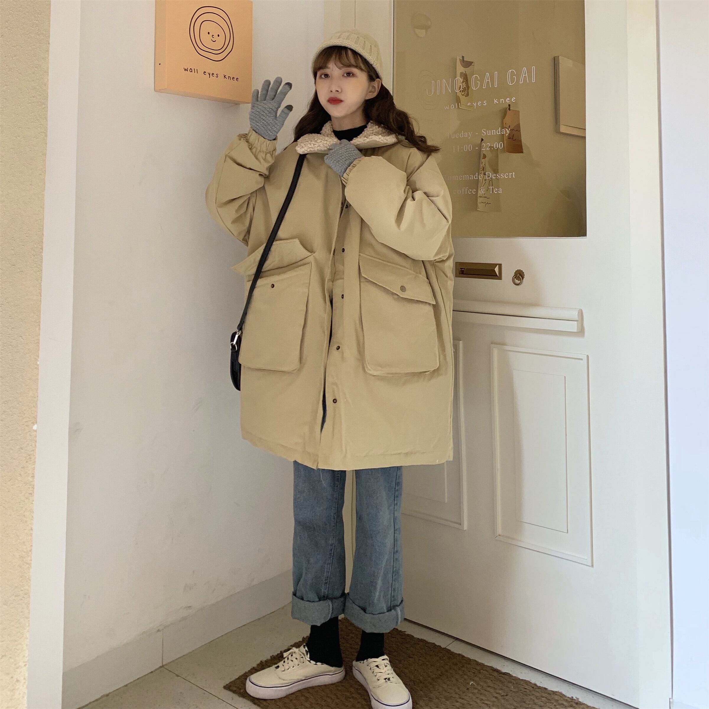 カーキフェイクウールジャケット オータムウィンタールーズベルベット 秋物 冬物 ファー 試着室73972155972