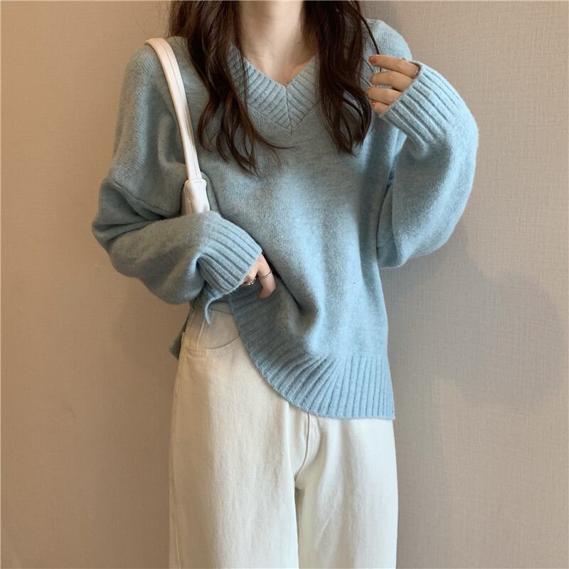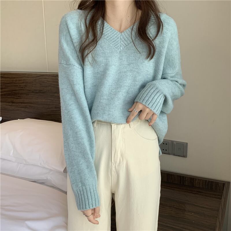 スタイルVネックプルオーバー セーター スプリングオータムスタンダード レトロ 春物 秋物 試着室33183379865