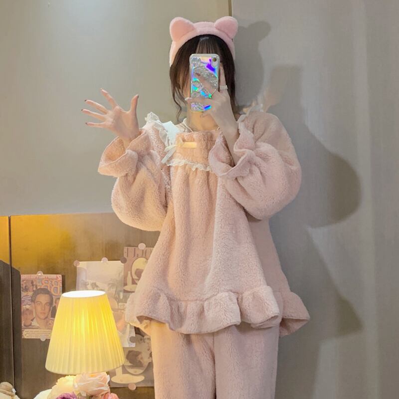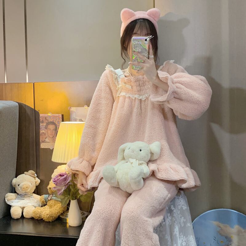 コーラルベルベットオータムウィンタースタイルフランネル 大人ガーリー スウィート キュート カジュアル 秋物 冬物 試着室22358281648