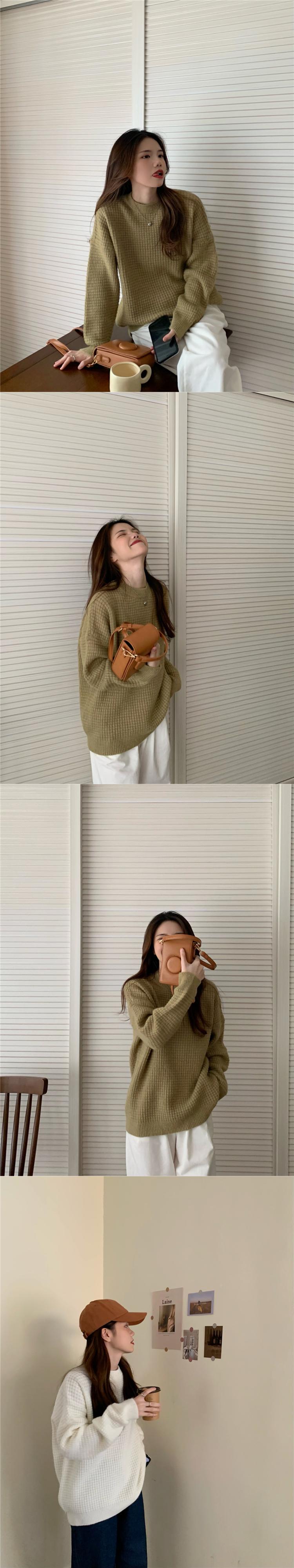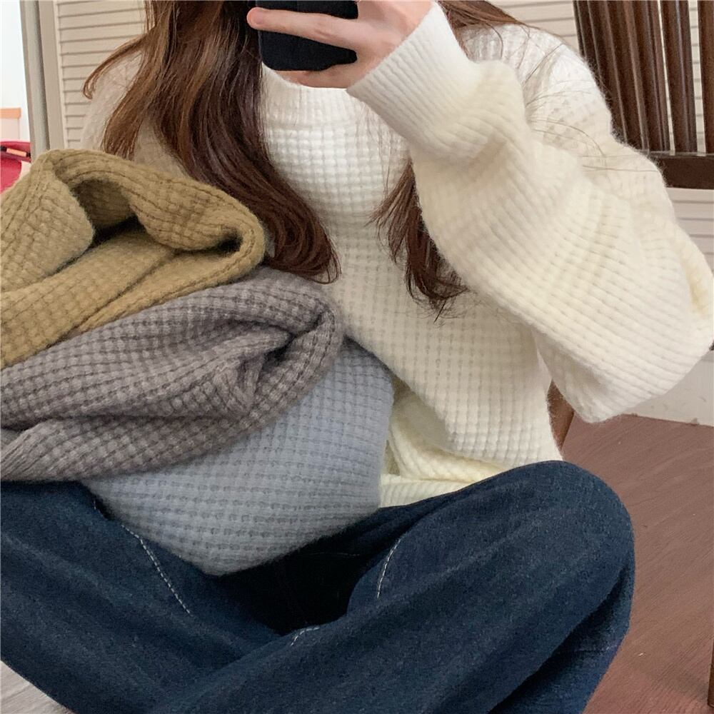 ホワイトラウンドネックセーター オータムウィンタールーズスタイル 秋物 冬物 Oネック 試着室1079564652