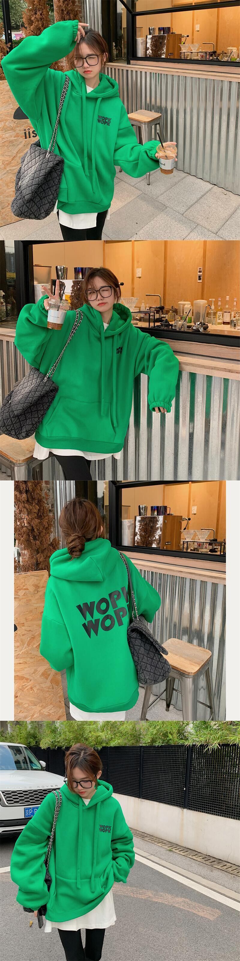 グリーンフードスウェット オータムウィンターベルベットルーズスタイルトップス 秋物 冬物 試着室39578519649