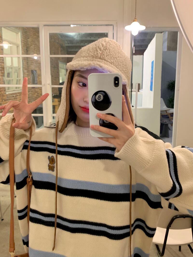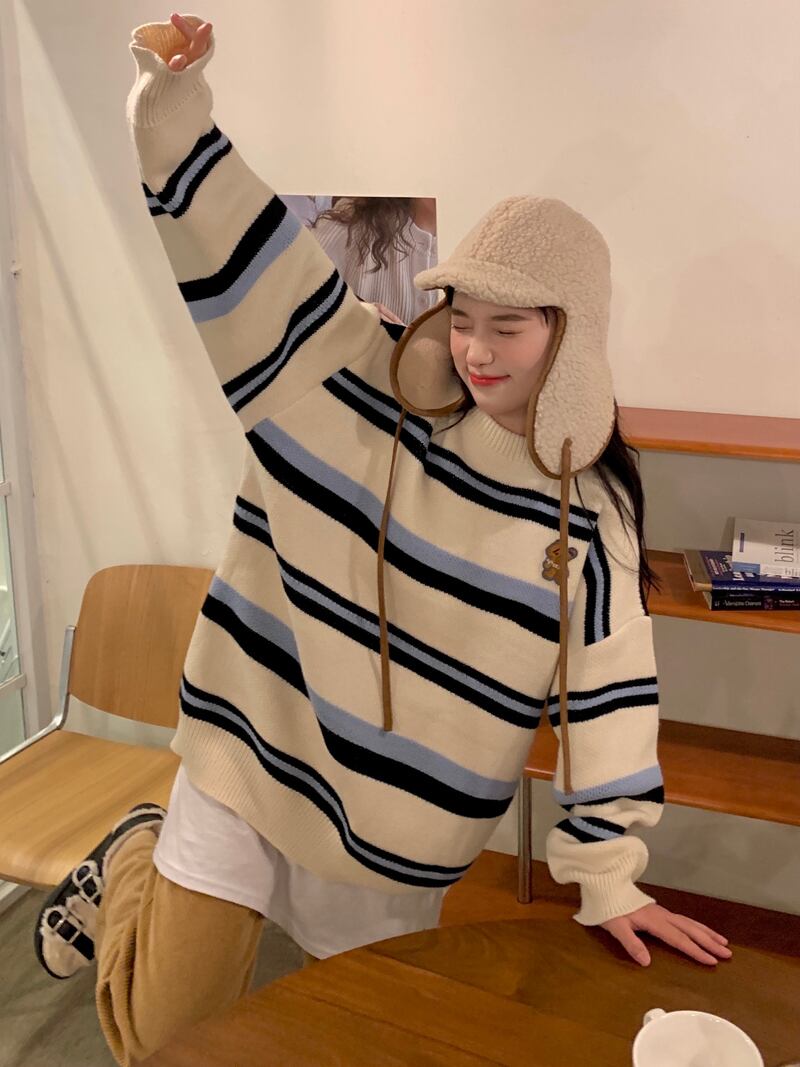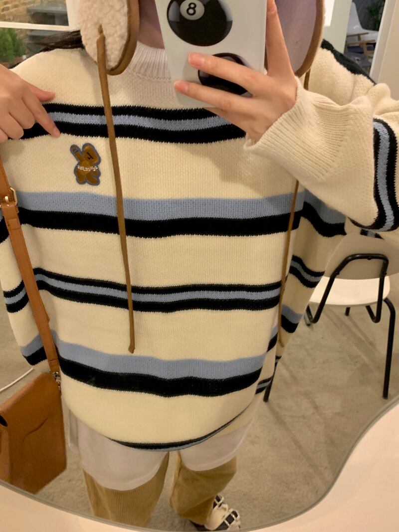 ホワイトストライプセーター オータムウィンタールーズニット 秋物 冬物 試着室726288480